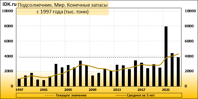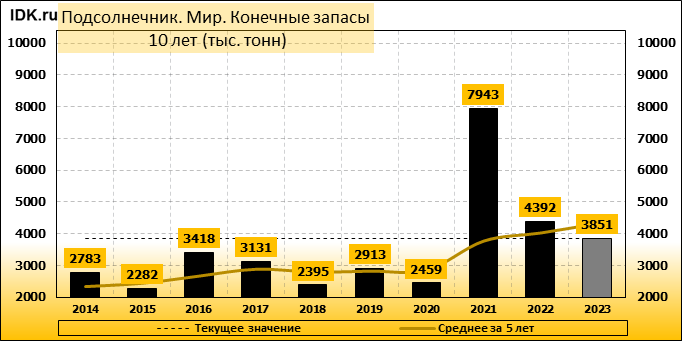 Конечные запасы: составят 3851 тысячу тонн. Оценка с последнего отчета снизилась на -7.67 процента.