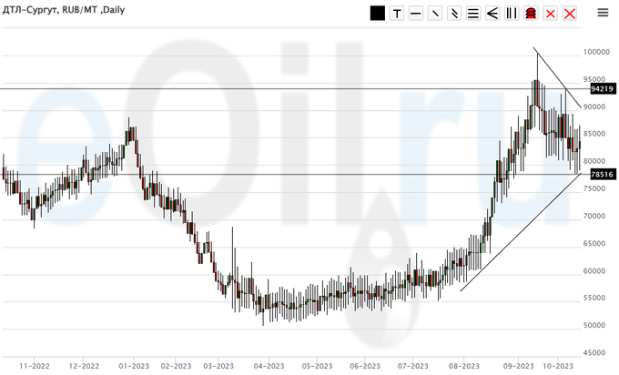 Сценарий роста: рассматриваем ноябрьский фьючерс, дата экспирации 30 ноября. До 80.00 не дошли, а значит не купили. Брать по текущим ценам не будем. Всё равно ждем коррекцию к 80.00.