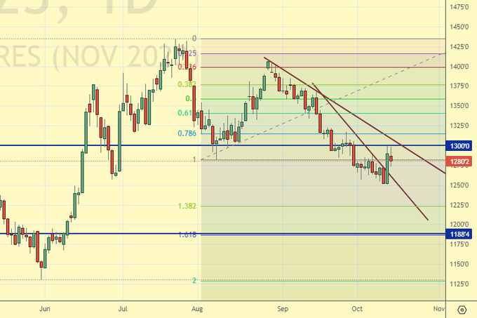 Сценарий роста: рассматриваем ноябрьский фьючерс, дата экспирации 10 ноября. По текущим ценам не покупаем. Ждем откат.