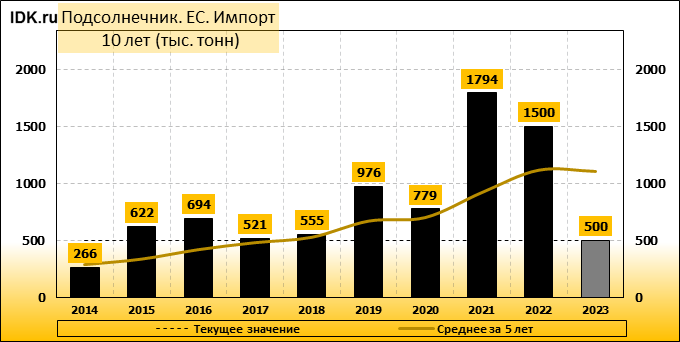 Импорт: составит 500 тысяч тонн. Значение по прошествии месяца упало на -37.5 процента.