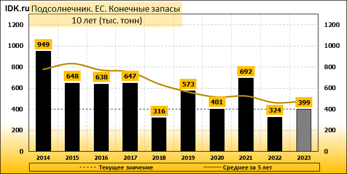 Конечные запасы: составят 399 тысяч тонн. Оценка с последнего отчета не изменилась.