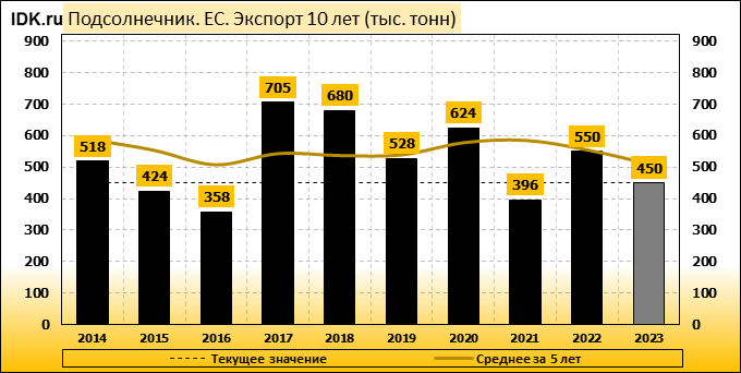 Экспорт: оценивается в 450 тысяч тонн. За месяц показатель упал на -18.18 процента.