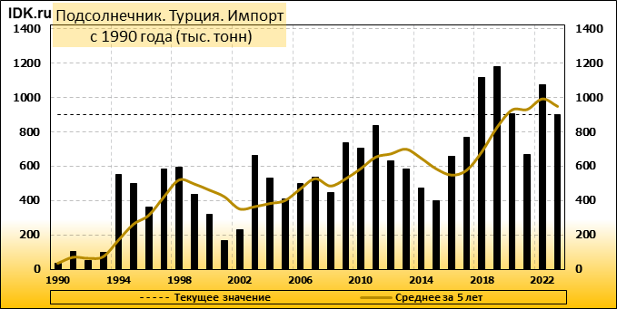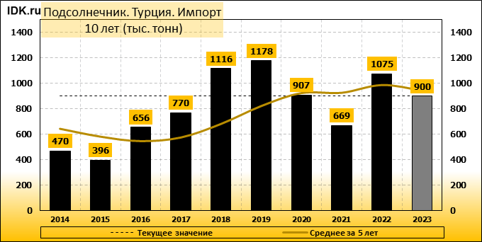 Импорт: составит 900 тысяч тонн. Значение по прошествии месяца упало на -25 процента.