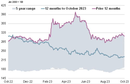 Индекс IGC упал на 2% за четыре недели после сентябрьского GMR, причем самые резкие потери наблюдались в пшенице и рисе.