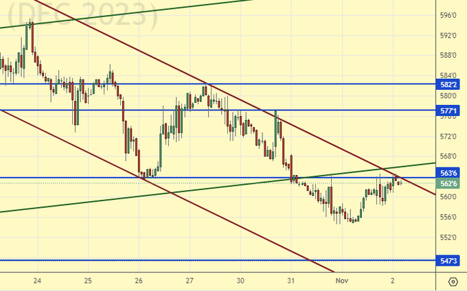 Пшеница (декабрьский контракт, CME Group, исполнение 14.12.2023)