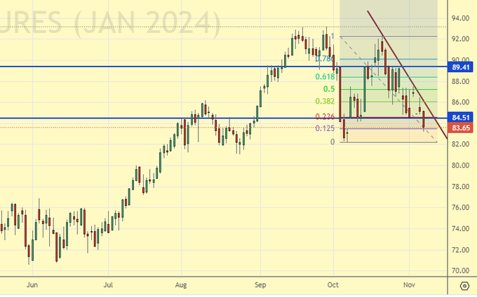 Growth scenario: we are considering November futures, expiration date is November 30. They couldn’t go below 85.00. For now, we continue to take a wait-and-see attitude.