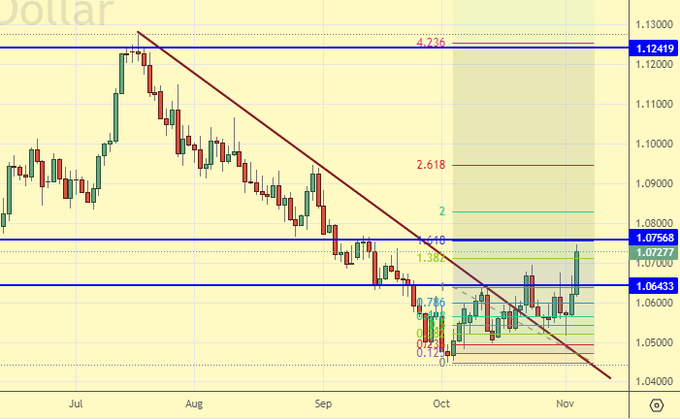 Growth scenario: rose above 1.0700 and entered long again. We will keep the purchase. At the top we have a lot of interesting things: both 1.1200 and 1.2000.