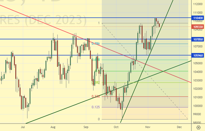 Growth scenario: we are considering December futures, expiration date November 28. They took it and fell. We were already out of position, so it’s okay. For now we will remain outside the market. Capitalists quickly filled supplies from Russia.