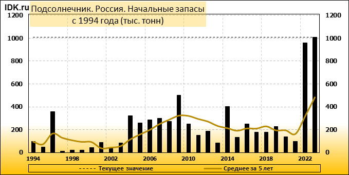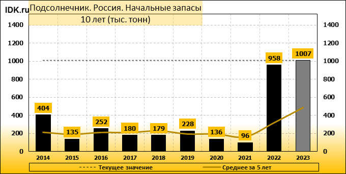 За прошедший месяц министерство сельского хозяйства США (USDA) на 09.11.2023 пересмотрело Баланс подсолнечника для России в сезоне 23/24 следующим образом:
