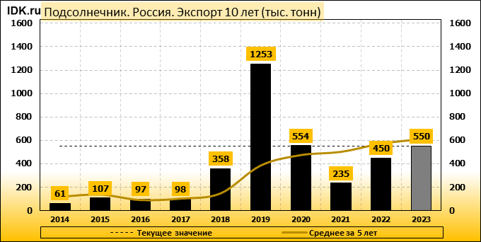 Экспорт: оценивается в 550 тысяч тонн. За месяц показатель не претерпел изменений.