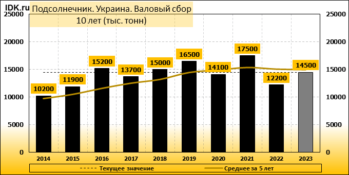 Валовый сбор: оценка пересмотрена в сторону повышения до 14500 тысяч тонн. Показатель вырос на 3.57 процента.