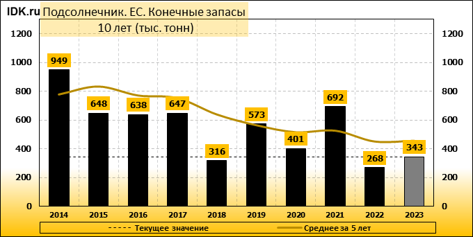 Конечные запасы: составят 343 тысячи тонн. Оценка с последнего отчета снизилась на -14.04 процента.