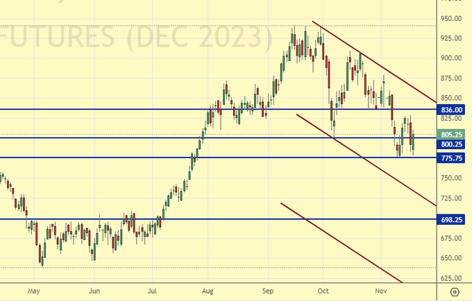 Growth scenario: we are considering November futures, expiration date January 12. There are big doubts about the ability of soybeans to grow, there is a lot of it. Off the market.