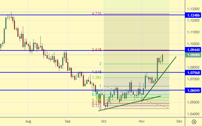Growth scenario: everything is fine, we keep buying. The market began to accelerate upward. At the top we have 1.1250, and somewhere high 1.2000.