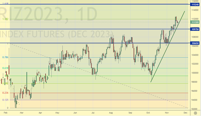 Growth scenario: we are considering December futures, expiration date is December 14. We are falling. It is possible that we will go very low. We are not buying yet.