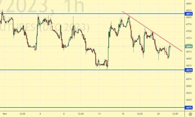 Продажа: нет. Кто в позиции от 472.0, перенесите стоп на 474.0. Цель 400.0.