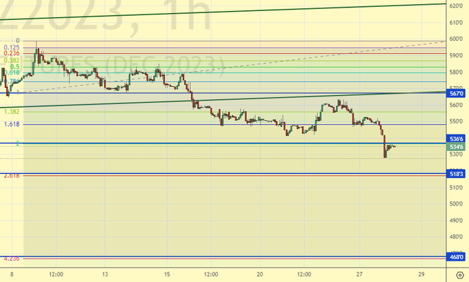 Рынок выбрал направление вниз. Так как уровни для продажи занижены, то мы не будем продавать. Покупки от 425.0 выглядят здраво.