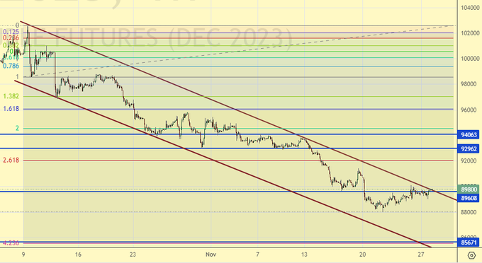 Продажа: при подходе к 96.40. Стоп: 97.40. Цель: 88.00. В случае касания 87.00. Стоп: 88.30. Цель: 80.00.