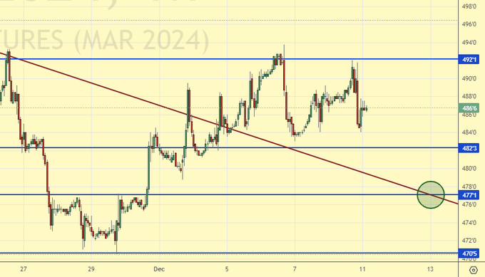 Отчет USDA показал, что с кукурузой в мире все просто отлично: валовый сбор подняли еще на 0.1%. Если будет откат к 475.0, то можно будет рассмотреть возможности о покупке на хороший объем.