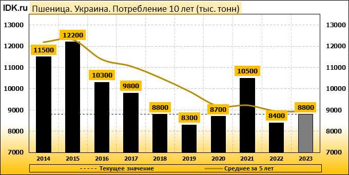 Потребление: показатель не изменился и составляет 8800 тысяч тонн.