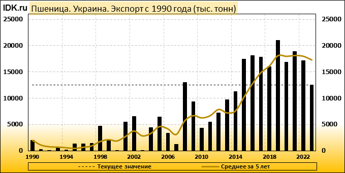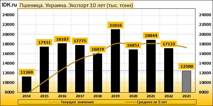 Экспорт: оценивается в 12500 тысяч тонн. За месяц показатель вырос на 4.17 процента.