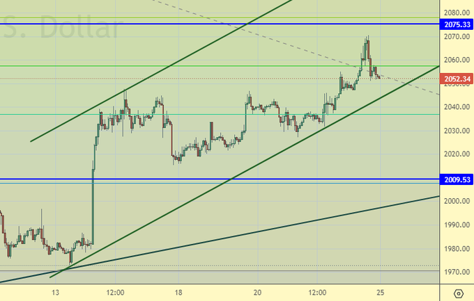Покупка: нет. Кто в позиции от 2042, держите стоп на 2038. Цель: 2400.