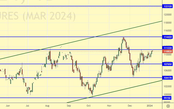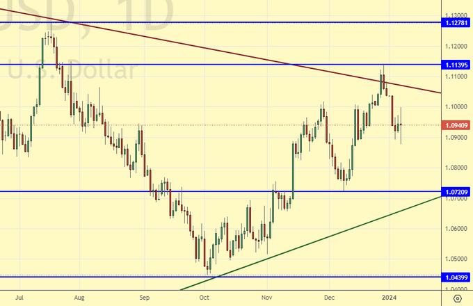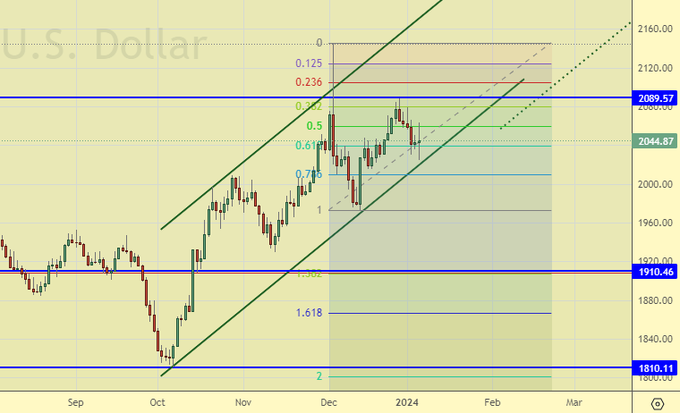 В ближайшие дни всё внимание будет забирать на себя Красное море, впрочем, как и неделей ранее. Буйство йеменских хуситов, сопровождающееся обстрелами танкеров, держит в напряжении весь мир. Кроме того, американцы провели спецоперацию в Ираке и кого-то убили, что взбесит тамошних патриотов. Ближний Восток опять начинает заниматься огнем. Это риск. Цены на нефть могут подскочить, если проблема будет усугубляться.