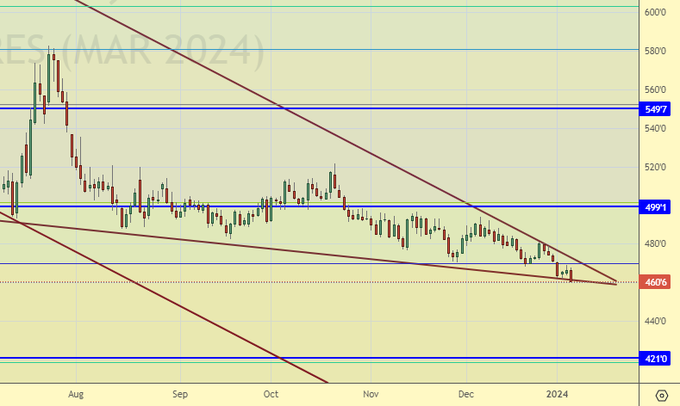 Продажа: нет. Кто в позиции от 470.0, перенесите стоп на 479.0. Цель: 425.0.