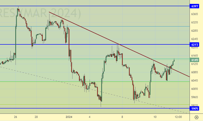 Пшеница (мартовский контракт, CME Group, исполнение 14.03.2024)