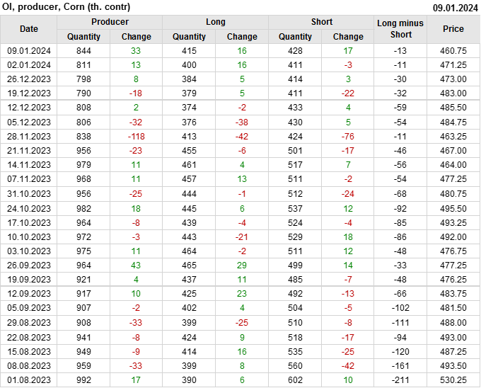 Открытый интерес производителей вырос на 33 тыс. контрактов. Объем контрактов, направленных на хеджирование, составляет 843 769 штук. Деньги производителей в течение прошлой недели приходили на рынок поддерживая тенденцию.