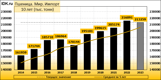 Импорт: составит 213259 тысяч тонн. Значение по прошествии месяца поднялось на 1.09 процента.