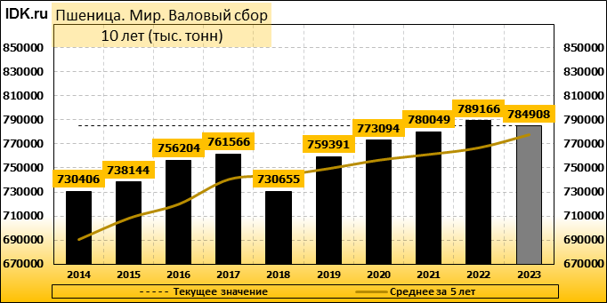 Валовый сбор: оценка пересмотрена в сторону повышения до 784908 тысяч тонн. Показатель вырос на 0.24 процента.
