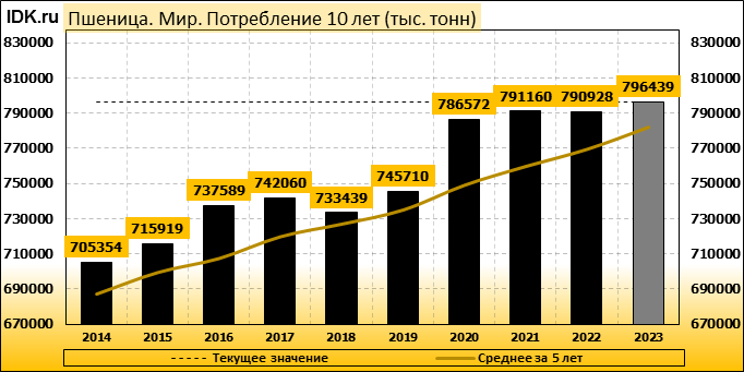 Потребление: показатель пересмотрен в сторону повышения до 796439 тысяч тонн. Значение выросло на 0.22 процента.