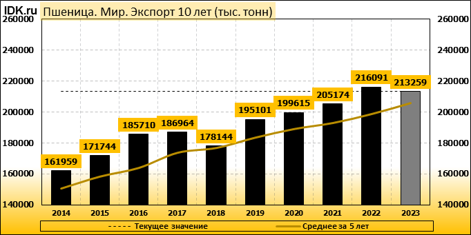 Экспорт: оценивается в 213259 тысяч тонн. За месяц показатель вырос на 1.09 процента.