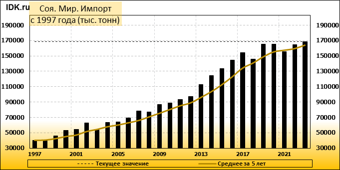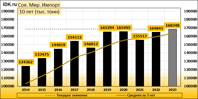 Импорт: составит 168348 тысяч тонн. Значение по прошествии месяца поднялось на 0.42 процента.