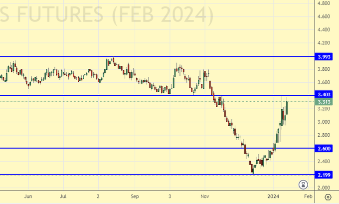 Сценарий роста: рассматриваем февральский фьючерс, дата экспирации 12 февраля. Пока быки неубедительны, однако, у них есть сейчас психологическое преимущество из-за событий в Красном море.