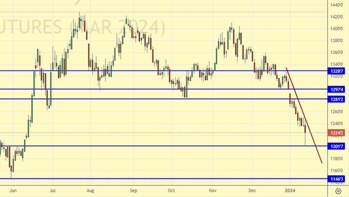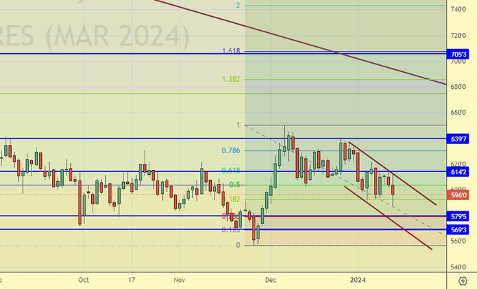 Сценарий падения: кукуруза падает. Она тащит вниз пшеницу, но ниже 570.0 ей будет сложно пройти.
