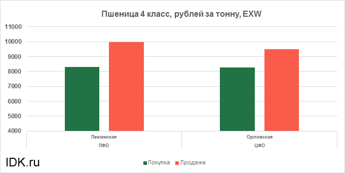За прошедшую неделю с 18.12.2023 по 22.12.2023 средняя цена на пшеницу 4-го класса, согласно выставленным заявкам трейдеров, выросла по всем округам на 246 рублей. Средняя цена составляет 9007 рублей за тонну.