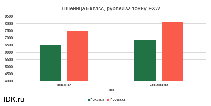 За прошедшую неделю с 18.12.2023 по 22.12.2023 средняя цена на пшеницу 5-го класса, согласно выставленным заявкам трейдеров, выросла по всем округам на 933 рубля. Средняя цена составляет 7215 рублей за тонну.