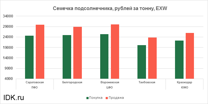 В ЮФО цена упала на 1868 рублей, до 24133 рублей за тонну.