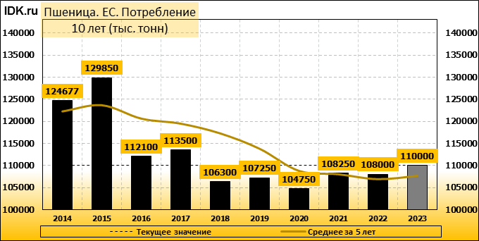 Потребление: показатель пересмотрен в сторону повышения до 110000 тысяч тонн. Значение выросло на 0.92 процента.