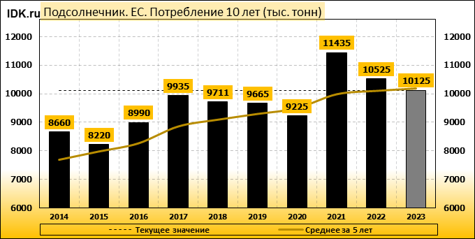 Ожидается, что производство семян подсолнечника значительно увеличится по сравнению с предыдущим годом, особенно в Румынии и Венгрии. По последним оценкам Комиссии ЕС, в этом году в ЕС-27 будет собрано около 10,9 млн тонн семян подсолнечника. Румыния намерена укрепить свои позиции крупнейшего производителя в ЕС. Оценка составляет 3,3 миллиона тонн, что на 967000 тонн (чуть менее 42%) выше, чем в предыдущем году. Согласно исследованиям, проведенным Agrarmarkt Informations-Gesellschaft, основной причиной значительного роста производства является более высокая урожайность, поскольку площади, засеянные подсолнечником, вероятно, незначительно уменьшатся до 1,3 миллиона гектаров. Ожидается, что и в других странах-членах ЕС, включая Венгрию, Болгарию, Грецию, Италию и Словакию, будет наблюдаться значительный рост урожая.