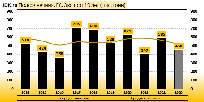 Экспорт: оценивается в 450 тысяч тонн. За месяц показатель не претерпел изменений.