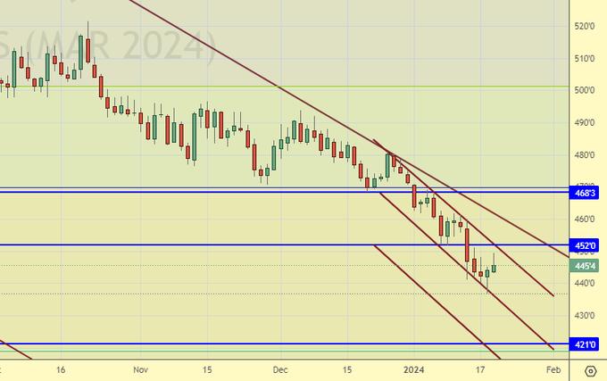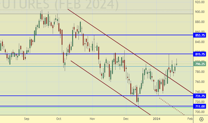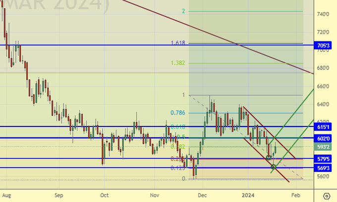 Пшеница в Чикаго пока не может закрепиться выше 600.0 центов за бушель, однако по мере приближения сезона весенне-полевых работ мы скорее увидим рост в феврале просто на фоне неопределенности.