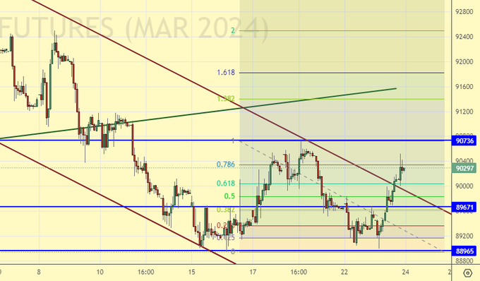 Покупка: при подходе к 89700. Стоп: 89400. Цель: 100000.