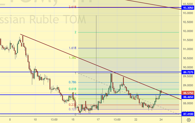 Покупка: при подходе к 88.30. Стоп: 87.30. Цель: 100.00.