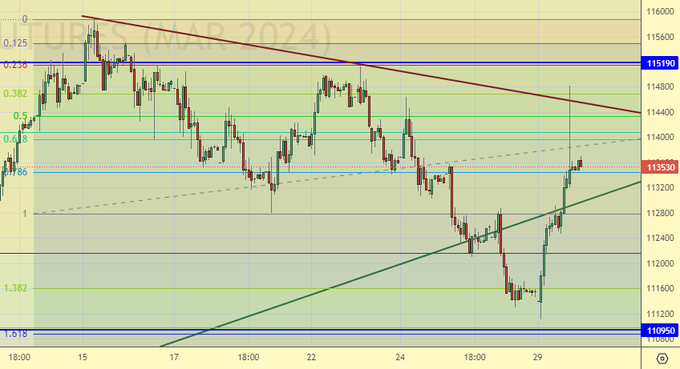 Нельзя сказать, что рынок развернулся вверх. На сегодня лучше всего взять паузу и не открывать новых позиций. Вероятно, что курс рубля будет сильно влиять на индекс в ближайшие дни. Отмечаем неприятную тень вверх для продавцов.