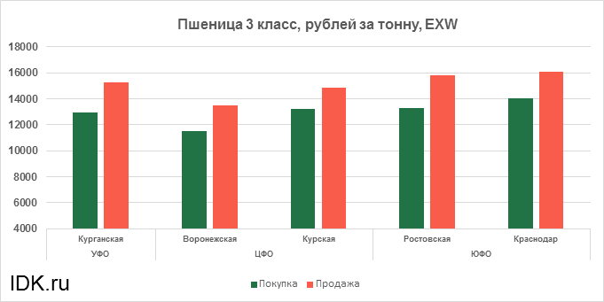 За прошедшую неделю с 29.01.2024 по 02.02.2024 средняя цена на пшеницу 3-го класса, согласно выставленным заявкам трейдеров, упала по всем округам на 128 рублей. Средняя цена составляет 13925 рублей за тонну.