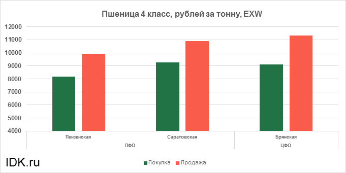 За прошедшую неделю с 29.01.2024 по 02.02.2024 средняя цена на пшеницу 4-го класса, согласно выставленным заявкам трейдеров, выросла по всем округам на 483 рубля. Средняя цена составляет 9951 рубль за тонну.
