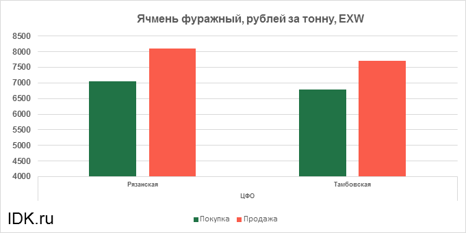 За прошедшую неделю с 29.01.2024 по 02.02.2024 средняя цена на фуражный ячмень, согласно выставленным заявкам трейдеров, выросла по всем округам на 110 рублей. Средняя цена составляет 7351 рубль за тонну.